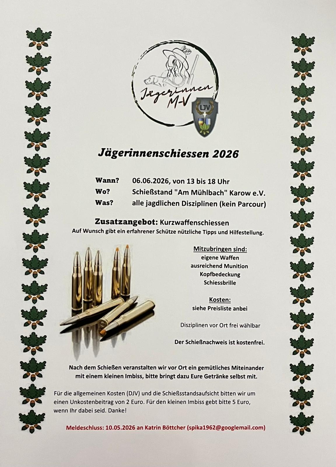 - 06.06.26 Jägerinnen-Schießen in Karow bei Güstrow