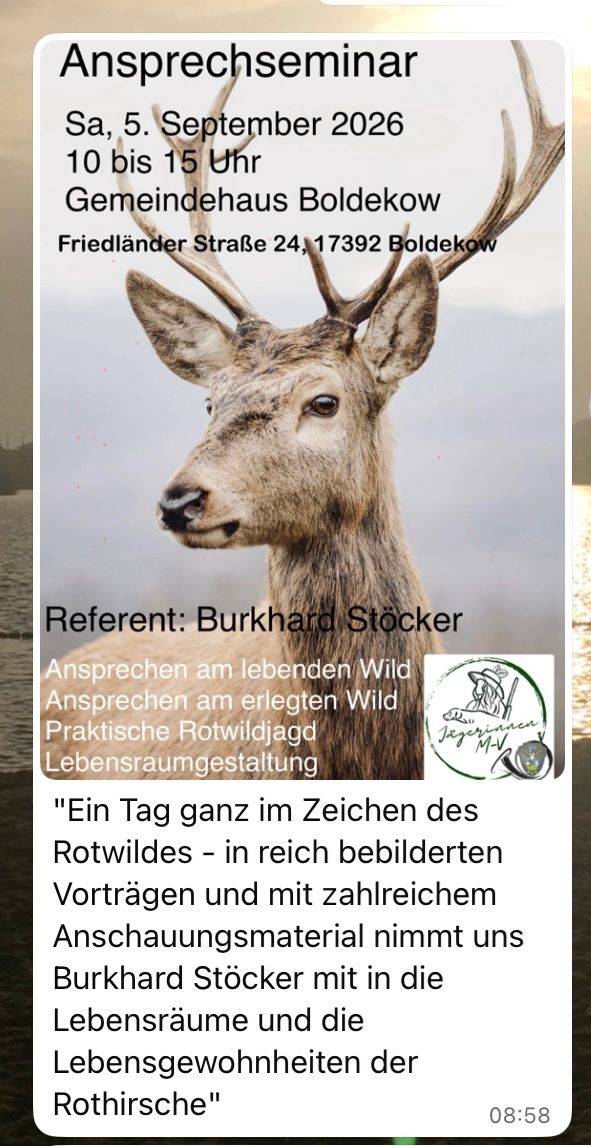 - 05.09.26 Rotwild-Ansprechseminar in Boldekow für Jägerinnen